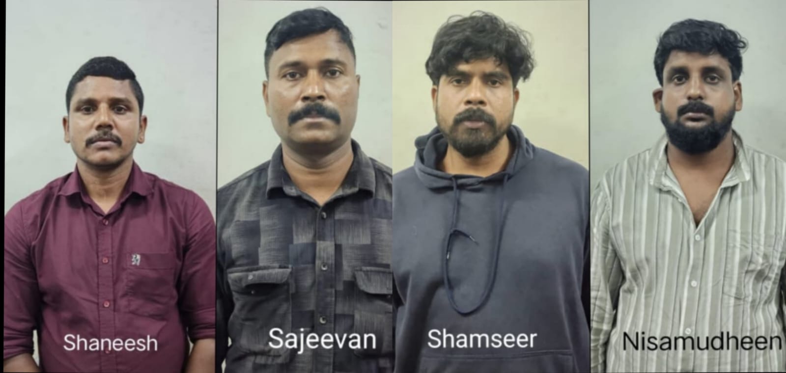 വാഹനത്തിന് പിറകിൽ നാല് പേർ മാറി നിൽക്കുന്നത് കണ്ട് ഇവരെ ചോദ്യം ചെയ്തപ്പോൾ ഇവർ പരസ്പരവിരുദ്ധമായി സംസാരിച്ചത് പോലീസിന്റെ സംശയം ഇരട്ടിപ്പിച്ചു.കൂട്ടത്തിൽ ഒരാളായ ഷനീഷ് മുൻപ് അമ്പലവയൽ പോലീസ് സ്റ്റേഷൻ പരിധിയിലെ കവർച്ചാ കേസിൽ ഉൾപ്പെട്ടിട്ടുള്ളതാണെന്നും വാഹനത്തിന്റെ നമ്പർ പ്ലേറ്റ് വ്യാജമാണെന്ന് മനസ്സിലാക്കുകയും ചെയ്തതോടെ നാല് പേരെയും മാറി മാറി ചോദ്യം ചെയ്യുകയും ഇവർ ബാംഗ്ലൂരിൽ നിന്നും വരുന്ന വാഹനം കവർച്ച നടത്തുന്നതിനായി വന്നിട്ടുള്ളതാണെന്നും മനസ്സിലാക്കുകയും ചെയ്തു. ഉടൻതന്നെ നൈറ്റ് ഡ്യൂട്ടിയിൽ ഉണ്ടായിരുന്ന ക്രൈംബ്രാഞ്ച് ഡിവൈഎസ്പി കെ.ജി പ്രവീൺകുമാറിനെ വിവരമറിയിക്കുകയും കൂടുതൽ പോലീസെത്തി ഇവരെ കസ്റ്റഡിയിലെടുക്കുകയുമായിരുന്നു.
