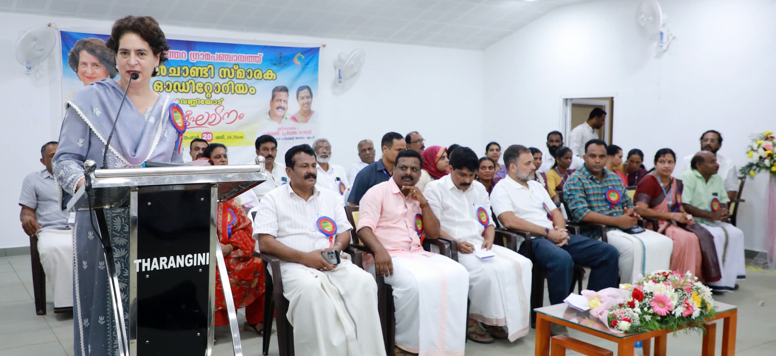 വെണ്ണിയോട് :ഉന്നതികളിലെ ജനങ്ങളുടെ വിദ്യാഭ്യാസ, യാത്ര പ്രശ്നങ്ങൾക്ക് പരിഹാരം കാണണമെന്ന് പ്രിയങ്ക ഗാന്ധി വാദ്ര എംപി. കോട്ടത്തറ ഗ്രാമപഞ്ചായത്ത് വെണ്ണിയോട് അത്യാധുനിക സൗകര്യങ്ങളോട് കൂടി നിർമിച്ച ഉമ്മൻ ചാണ്ടി സ്മാരക ഓഡിറ്റോറിയം ഉദ്ഘാടനം