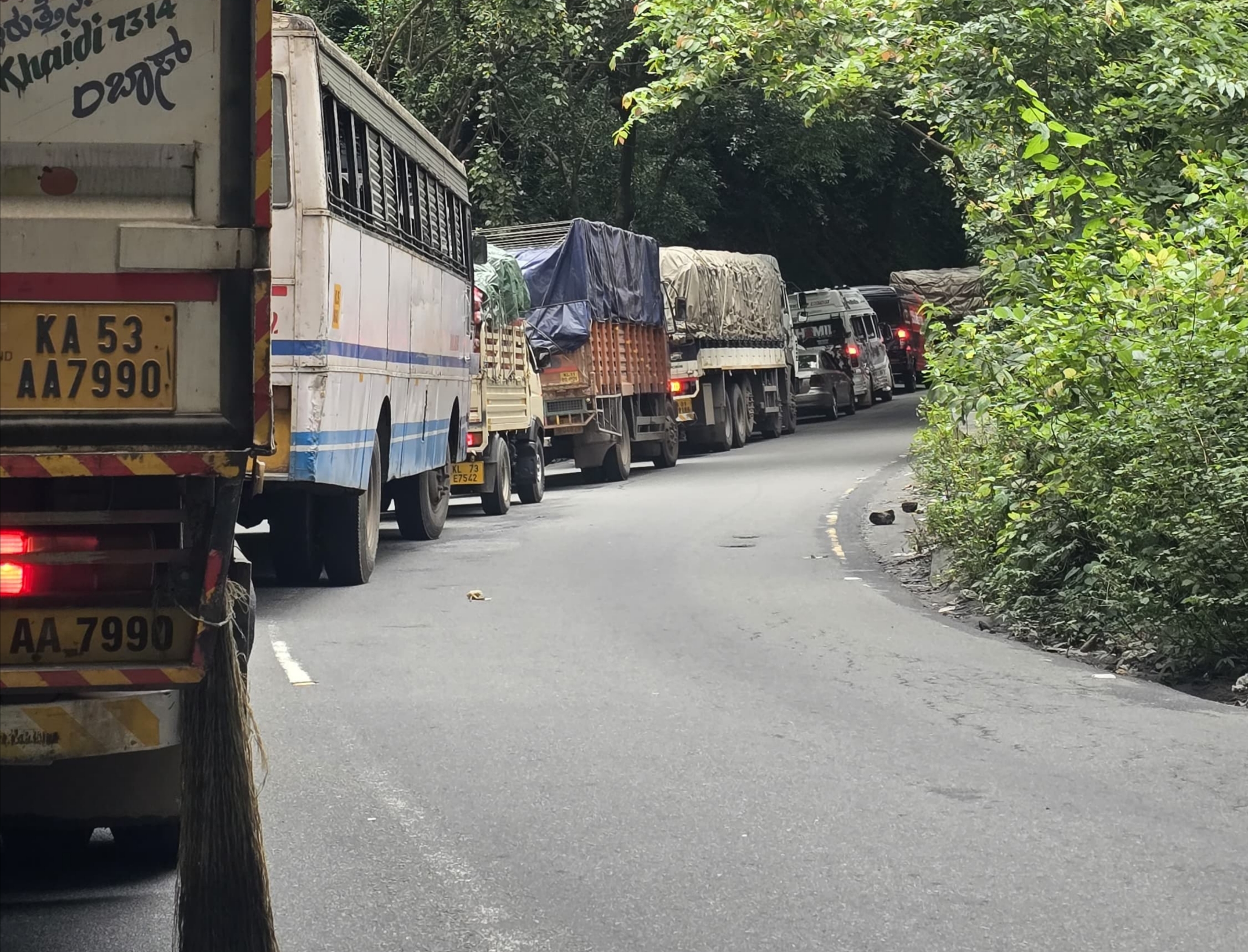 വയനാട് ചുരത്തിൽ ലോറി കുടുങ്ങി ഗതാഗത തടസ്സം