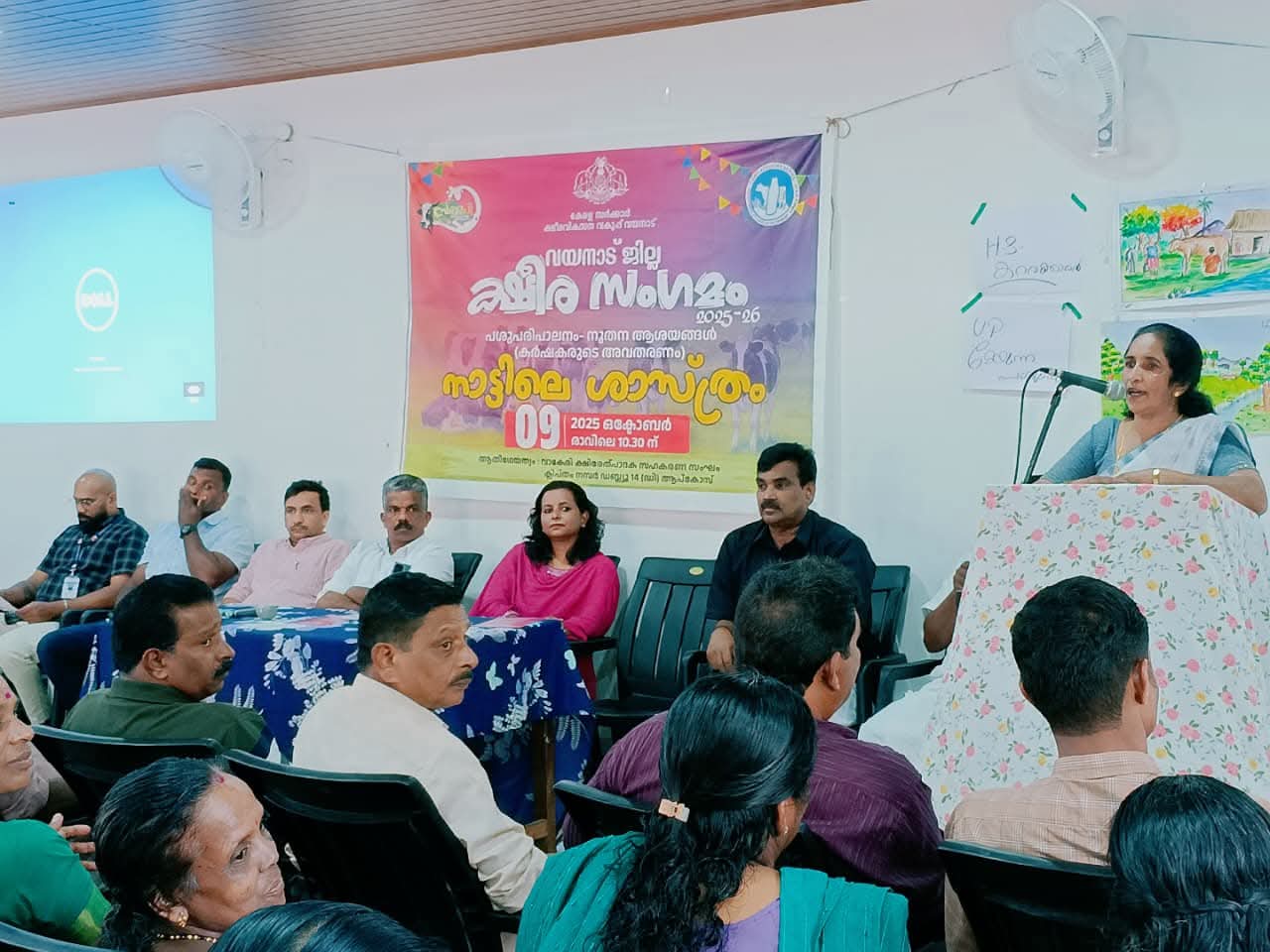 വാകേരി : വയനാട് ജില്ലാ ക്ഷീര സംഗമത്തിന്റെ ഭാഗമായി നാട്ടിലെ ശാസ്ത്രം എന്നപേരിൽ പശുപരിപാലനെത്തുറിച്ചുള്ള കര്ഷകരുടെ നൂതന ആശയാവതരണം സംഘടിപ്പിച്ചു. വാകേരി ക്ഷീര സംഘം ഹാളിൽ വെച്ച് നടന്ന ക്ഷീരസംഗമം മിൽമ ഡയറക്ടർ റോസിലി തോമസ് ഉദ്ഘാടനം ചെയ്തു. വെറ്ററിനറി യൂണിവേഴ്സിറ്റി ലൈവ്സ്റ്റോക്ക് പ്രൊഡക്ഷൻ മാനേജ്മെന്റ് വിഭാഗം അസിസ്റ്റന്റ് പ്രൊഫസർ ഡോ.സക്കറിയാ ഇബ്രാഹിമിന്റെ നേതൃത്വത്തിൽ ലില്ലി മാത്യു, അനൂപ്, ജോസ് വാൾഡ്, വിപിൻ എന്നീ കർഷകർ നൂതന ആശയങ്ങൾ പങ്കുവെച്ചു