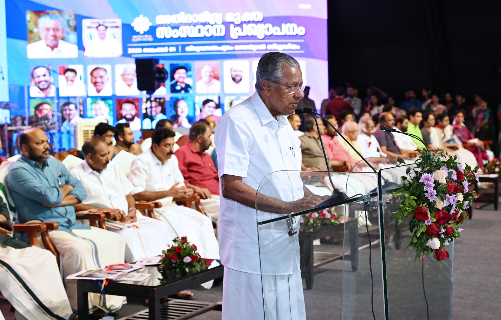 ഇന്ന് നാം ഇവിടെ പ്രഖ്യാപിച്ച അതിദാരിദ്ര്യ നിര്മ്മാര്ജ്ജനം, കേരളം ലോകത്തിനു മുന്നില്വെക്കുന്ന ‘ജനപക്ഷ ബദല് വികസന മാതൃക’യുടെ വിജയമാണ്. നവ ഉദാരവല്ക്കരണ നയങ്ങള് രാജ്യത്ത് അസമത്വം വര്ദ്ധിപ്പിക്കുമ്പോള്, സമ്പത്ത് ചിലരുടെ കൈകളില് മാത്രം കുന്നുകൂടുമ്പോള്, എല്ലാ ജനവിഭാഗങ്ങളെയും ചേര്ത്തുപിടിക്കുന്ന, ആര്ദ്രതയുള്ള, സമത്വത്തെ ഉയര്ത്തിപ്പിടിക്കുന്ന ക്ഷേമ മാതൃക സാധ്യമാണെന്ന് കേരളം നെഞ്ചുവിരിച്ച് തല ഉയർത്തി ലോകത്തോട് പറയുകയാണ്.