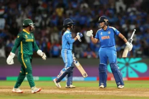 ഇന്ത്യക്ക് ഓപ്പണര് സ്മൃതി മന്ധാനയുടെ വിക്കറ്റാണ് ആദ്യം നഷ്ടമായത്. താരം 58 പന്തില് 8 ഫോറുകള് സഹിതം 45 റണ്സെടുത്തു. സെമിയില് സെഞ്ച്വറിയുമായി തിളങ്ങിയ ജെമിമ റോഡ്രിഗ്സ് മൂന്നാം വിക്കറ്റായി പുറത്തായി. താരം 24 റണ്സെടുത്തു. നാലാം വിക്കറ്റായി മടങ്ങിയത് ക്യാപ്റ്റന് ഹര്മന്പ്രീത് കൗര്. 20 റണ്സാണ് ഹര്മന് നേടിയത്.ആദ്യം ബാറ്റിങ് തുടങ്ങിയ ഇന്ത്യക്കായി മികച്ച തുടക്കമാണ് സ്മൃതി- ഷഫാലി സഖ്യം നല്കിയത്. അതിവേഗം റണ്സ് സ്കോര് ചെയ്ത സഖ്യം സെഞ്ച്വറി കൂട്ടുകെട്ടുയര്ത്തിയ ശേഷമാണ് പിരിഞ്ഞത്. സ്കോര് 104ല് നില്ക്കെയാണ് സ്മൃതിയുടെ മടക്കം. ദക്ഷിണാഫ്രിക്കയ്ക്കായി അയബോംഗ ഖക 3 വിക്കറ്റുകള് വീഴ്ത്തി. നോന്കുലുലേക മ്ലാബ, നദീന് ഡി ക്ലാര്ക് എന്നിവര് ഓരോ വിക്കറ്റെടുത്തു.