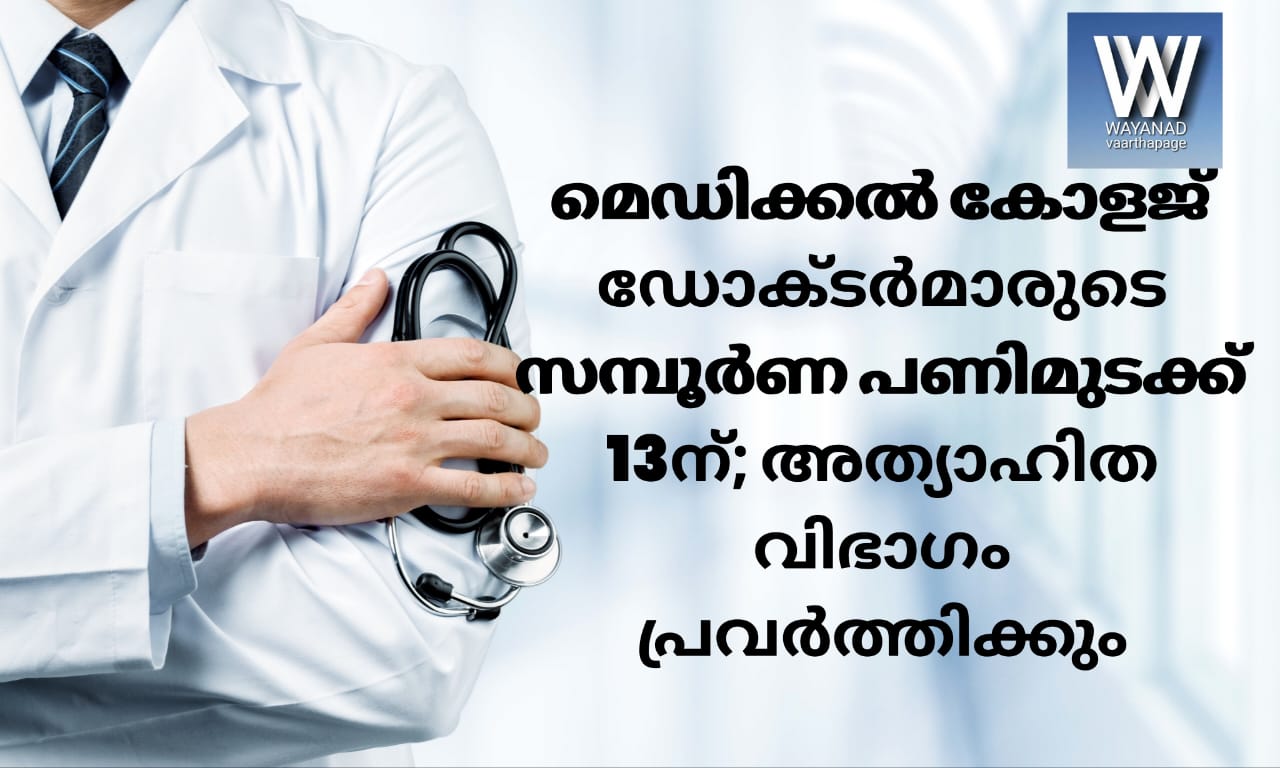 തിരുവനന്തപരം: സംസ്ഥാനത്തെ മെഡിക്കൽ കോളജുകളിലെ ഡോക്ടർമാർ നവംബർ 13 മുതൽ സമ്പൂർണ പണിമുടക്കിലേക്ക്. അത്യാഹിത സേവനങ്ങൾ ഒഴികെ മുഴുവൻ പ്രവർത്തനങ്ങളിൽ നിന്ന് ഡോക്ടർമാർ വിട്ടുനിൽക്കുമെന്ന് കെ.ജി.എം.സി.ടി.എ അറിയിച്ചു. പ്രവേശന തസ്തികകളിലെ ശമ്പളത്തിലെ അപാകത പരിഹരിക്കുക, 2016 മുതലുള്ള ശമ്പള പരിഷ്കരണ കുടിശിക ഉടൻ നൽകുക, പുതിയ മെഡിക്കൽ കോളജുകൾ ആരംഭിക്കുന്നതിന് മുമ്പ് ആവശ്യമായ തസ്തികകൾ സൃഷ്ടിക്കുക, അശാസ്ത്രീയമായ പുനർവിന്യാസം അവസാനിപ്പിക്കുക അടക്കമുള്ള ആവശ്യങ്ങളാണ് ഡോക്ടർമാർ മുന്നോട്ടുവെക്കുന്നത്. ആവശ്യങ്ങൾ ഉന്നയിച്ച് ഡോക്ടർമാർ ഏറെനാളായി നിസഹരണ സമരത്തിലാണ്. കഴിഞ്ഞയാഴ്ചകളിൽ ഒരു ദിവസം ഒ.പിയിൽ നിന്നും തീയറി ക്ലാസുകളിൽ നിന്നും വിട്ടുനിന്ന് സമരം നടത്തിയിരുന്നു. ലേബർ, അത്യാഹിതം, ഐ.സി.യു എന്നീ സേവനങ്ങൾ സമരത്തിൽ നിന്ന് ഒഴിവാക്കിയിരുന്നു.