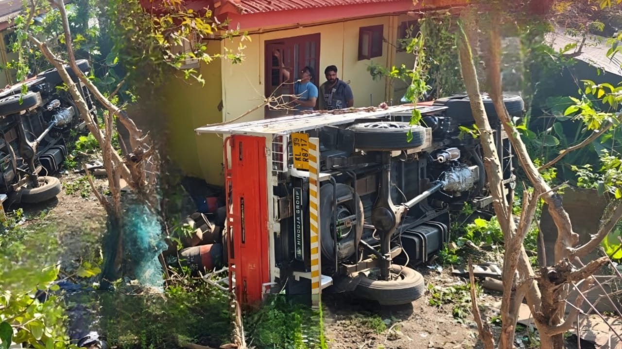 മാനന്തവാടി : ഗ്യാസ് സിലിണ്ടറുമായി വന്ന വാഹനം നിയന്ത്രണം വിട്ട് വീട്ടുമുറ്റത്തേക്ക് മറിഞ്ഞു. എരുമത്തെരുവ് കൂനാർ വയലിൽ മേൻമ ഗോപിയുടെ വീട്ടുമുറ്റത്തേക്കാണ് വാഹനം മറിഞ്ഞത്. ഇന്ന് രാവിലെ ഒമ്പത് മണിയോടെയായിരുന്നു അപകടം. ഇരിട്ടിയിൽ നിന്നും മാനന്തവാടിയിലേക്ക് ഗ്യാസ് നിറക്കാനായി വരികയായിരുന്ന വാഹനമാണ് അപകടത്തിൽപ്പെട്ടത്. ബ്രേക്ക് നഷ്ടപ്പെട്ടതാണ് വാഹനം മറിയാൻ കാരണമെന്നാണ് വിവരം. അപകടത്തിൽ ഡ്രൈവർക്ക് നിസാര പരിക്കേറ്റു. വീട്ടുമുറ്റത്തേക്ക് മറിഞ്ഞെങ്കിലും വൻ ദുരന്തമാണ് ഒഴിവായത്.