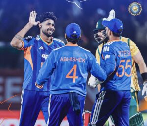 ചെറിയ വിജയലക്ഷ്യം പിന്തുടർന്ന് ഇറങ്ങിയ ഇന്ത്യയ്ക്കായി ഓപ്പണർമാർ മികച്ച തുടക്കമാണ് നൽകിയത്. പതിവുശൈലിയിൽ അഭിഷേക് നിറഞ്ഞാടിയതോടെ അതിവേഗം സ്കോറുയർന്നു. ദക്ഷിണാഫ്രിക്കയ്ക്കായി മാർകോ യാൻസനും കോർബിൻ ബോഷും ഓരോ വിക്കറ്റ് വീതം വീഴ്ത്തി. രണ്ട് മത്സരങ്ങളിലെ മോശം പ്രകടനത്തിന് ശേഷം ശുഭ്മൻ ഗിൽ രണ്ടക്കം കടന്നെങ്കിലും പതിയെയായിരുന്നു സ്കോറിങ്. ക്യാപ്റ്റൻ സൂര്യകുമാർ യാദവ് ഇന്നും നിരാശപെടുത്തി