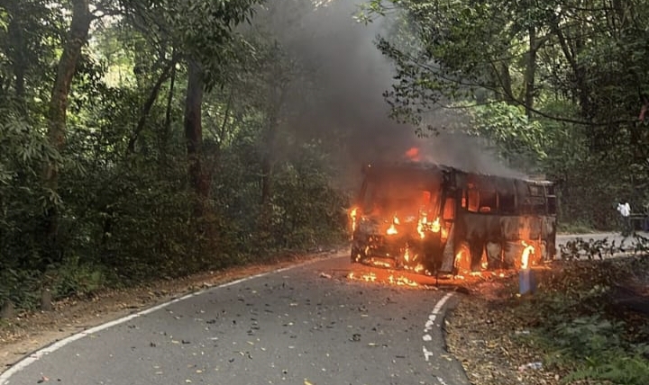 മാക്കൂട്ടം ചുരത്തില് ടൂറിസ്റ്റ് ബസിന് തീപിടിച്ചു