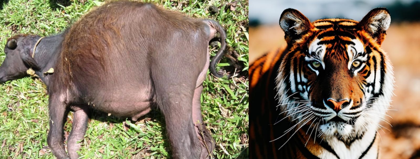 വയനാട് ചീയമ്പത്ത് കടുവ പോത്തുകുട്ടിയെ ആക്രമിച്ചു കൊന്നു