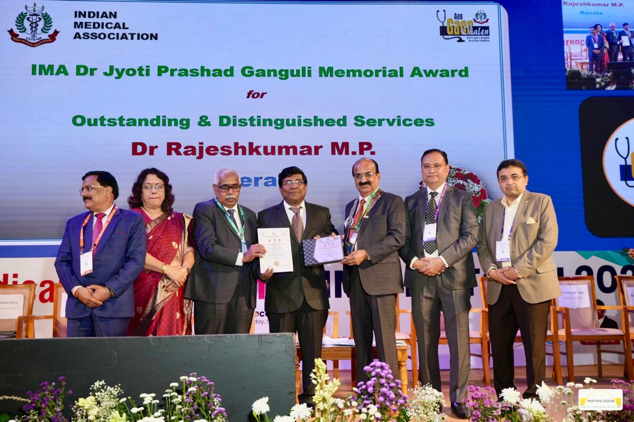 കൽപ്പറ്റ : വയനാട് ജില്ലയ്ക്ക് അഭിമാന നേട്ടം. സ്തുത്യർഹവും വിശിഷ്ടവുമായ സേവനങ്ങൾക്കായി നൽകുന്ന ഡോ. ജ്യോതിപ്രസാദ് ഗാംഗുലി മെമ്മോറിയൽ നാഷണൽ അവാർഡ് വൈത്തിരിയിലെ ഡോ. രാജേഷ് കുമാർ എം.പി.യെ തേടിയെത്തി. ആരോഗ്യ രംഗത്ത് അദ്ദേഹം നല്കിയ മികച്ച സേവനങ്ങളും, സമൂഹത്തിന്റെ വിവിധ തലങ്ങളിൽ അദ്ദേഹം നിർവഹിച്ച തുടർച്ചയായ സാമൂഹ്യ-സേവന പ്രവർത്തനങ്ങളുമാണ് ഈ ദേശീയ പുരസ്കാരത്തിന് അദ്ദേഹത്തെ അർഹനാക്കിയത്. ഗുജറാത്തിലെ അഹമ്മദാബാദിൽ കഴിഞ്ഞ ദിവസം നടന്ന ഇന്ത്യൻ മെഡിക്കൽ അസോസിയേഷൻ ദേശീയ സമ്മേളനത്തിലെ ഔദ്യോഗിക ചടങ്ങിൽ ഡോ. രാജേഷ് കുമാർ എം.പി. പുരസ്കാരം ഏറ്റുവാങ്ങി.