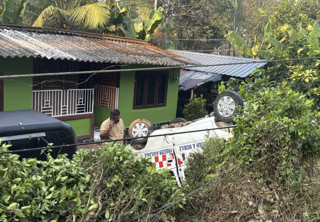 ആംബുലൻസ് നിയന്ത്രണം വിട്ട് മറിഞ്ഞു നാല് പേർക്ക് പരിക്ക്