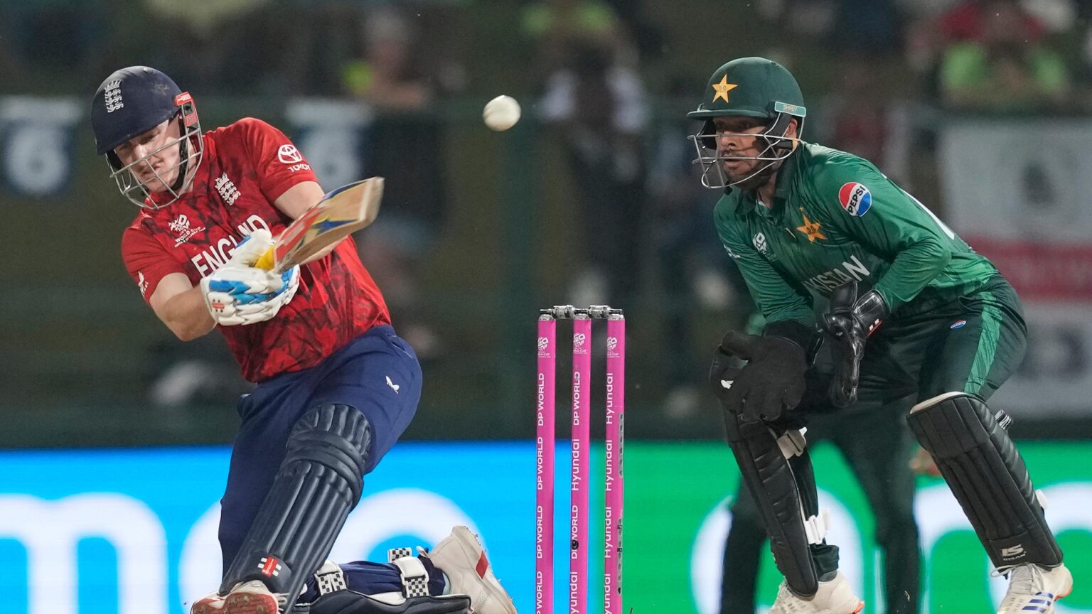 മറുപടി ബാറ്റിങ്ങിനിറങ്ങിയ ഇംഗ്ലണ്ടിന് ആദ്യ പന്തിൽ തന്നെ തിരിച്ചടി നേരിട്ടു. ഫിൽ സാൾട്ടിനെ പുറത്താക്കി ഷഹീൻ അഫ്രീദി പാകിസ്താന് ഗംഭീര തുടക്കം സമ്മാനിച്ചു. പിന്നാലെ ജോസ് ബട്ലറെയും കൂടാരം കയറ്റി ഷഹീൻ ഇംഗ്ലീഷ് നിരയെ പ്രതിരോധത്തിലാക്കി. 17-2 എന്ന നിലയിലായിരുന്നു ഇംഗ്ലണ്ട്. എന്നാൽ വൺഡൗണായിറങ്ങിയ ബ്രൂക്ക് നിലയുറപ്പിച്ചതോടെ ഇംഗ്ലണ്ട് പതിയെ കരകയറി. വന്നവരെല്ലാം നിരനിരയായി മടങ്ങിയപ്പോഴും ബ്രൂക്ക് പിടികൊടുത്തില്ല. ജേക്കബ് ബെത്തൽ(8), ടോം ബാന്റൺ(2) എന്നിവരും നിരാശപ്പെടുത്തി. ഏറെക്കുറെ ഒറ്റയ്ക്കാണ് ബ്രൂക്ക് ഇംഗ്ലീഷ് ഇന്നിങ്സ് മുന്നോട്ടുനയിച്ചത്. 58-4 എന്ന നിലയിൽ നിന്ന് ബ്രൂക്ക് ടീമിനെ കരകയറ്റി.