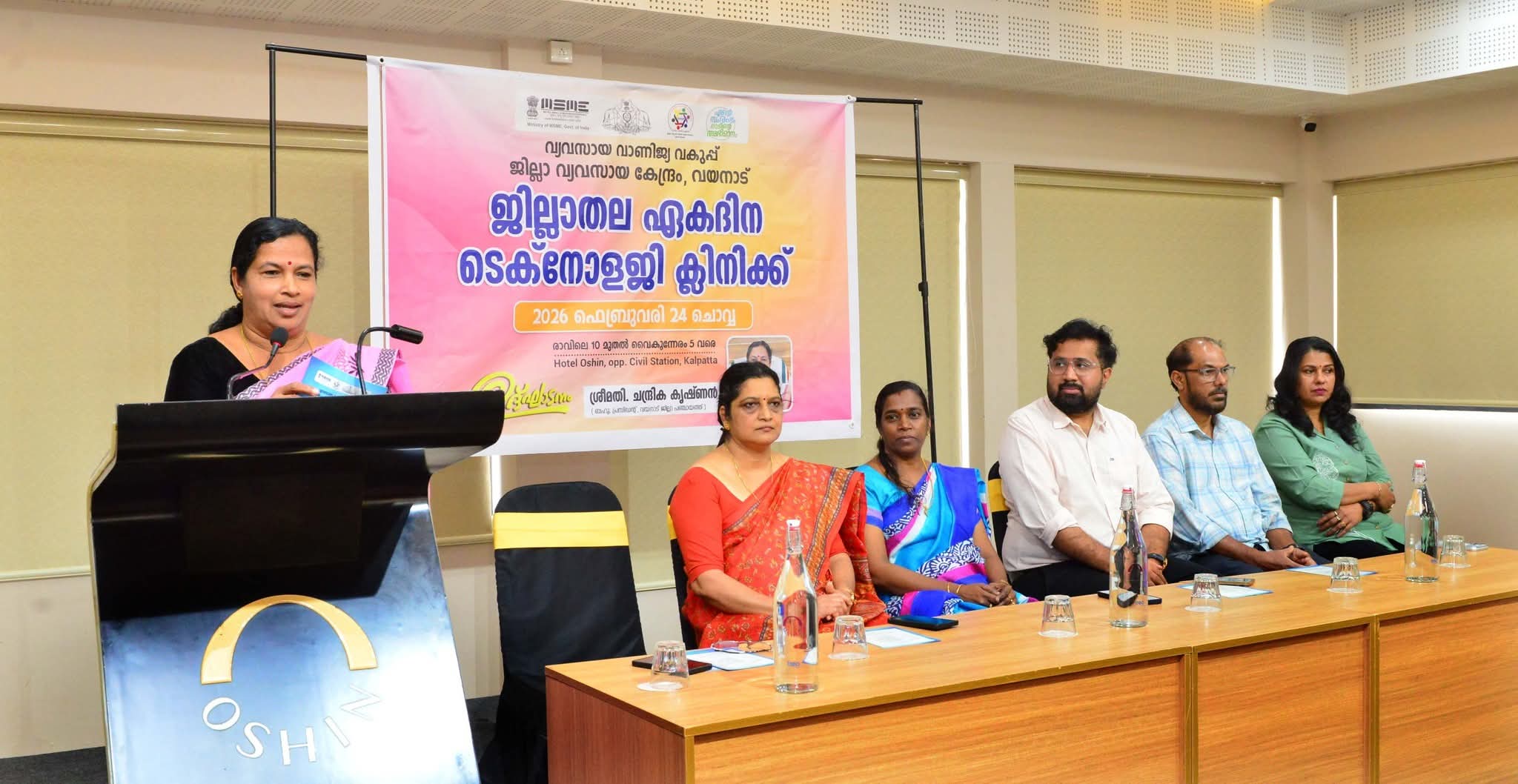 കല്‍പ്പറ്റ:ജില്ലാ വ്യവസായ കേന്ദ്രത്തിന്റെ ആഭിമുഖ്യത്തില്‍ ഏകദിന ടെക്‌നോളജി ക്ലിനിക്ക് സംഘടിപ്പിച്ചു. കല്‍പ്പറ്റ ഓഷ്യന്‍ ഹോട്ടലില്‍ നടന്ന ടെക്‌നോളജി ക്ലിനിക്ക് ജില്ലാ പഞ്ചായത്ത് പ്രസിഡന്റ് ചന്ദ്രിക കൃഷ്ണന്‍ ഉദ്ഘാടനം ചെയ്തു. ബ്യൂട്ടി ടെക്‌നിക്കില്‍, ഹെയര്‍ എക്സ്റ്റന്‍ഷന്‍, എക്സ്റ്റന്‍ഷന്‍ കെയര്‍ ടിപ്പുകള്‍, ട്രെന്‍ഡിങ് ഹെയര്‍ സ്‌റ്റൈല്‍ എന്നിവയില്‍ വിദഗ്ധര്‍ പരിശീലനം നല്‍കി. ഉദ്ദ്യം പേര്‍ട്ടലില്‍ രജിസ്റ്റര്‍ ചെയ്ത സംരംഭകരാണ് പരിപാടിയില്‍ പങ്കെടുത്തത്. ജില്ലാ വ്യവസായ കേന്ദ്രം ജനറല്‍ മാനേജര്‍ കെ.എ ജിഷ അധ്യക്ഷയായ പരിപാടിയില്‍ ജില്ലാ വ്യവസായ കേന്ദ്രം അസിസ്റ്റന്റ് ഡയറക്ടര്‍ അശ്വിന്‍ പി കുമാര്‍, ജില്ലാ വ്യവസായ കേന്ദ്രം മാനേജര്‍ (ക്രഡിറ്റ്) പി.എസ് കലാവതി, അസിസ്റ്റന്റ് ജില്ലാ വ്യവസായ ഓഫീസര്‍ മുഹമ്മദ് നയിം, കോസ്‌മെറ്റോളജിസ്റ്റ് കെ.രജനി എന്നിവര്‍ സംസാരിച്ചു.