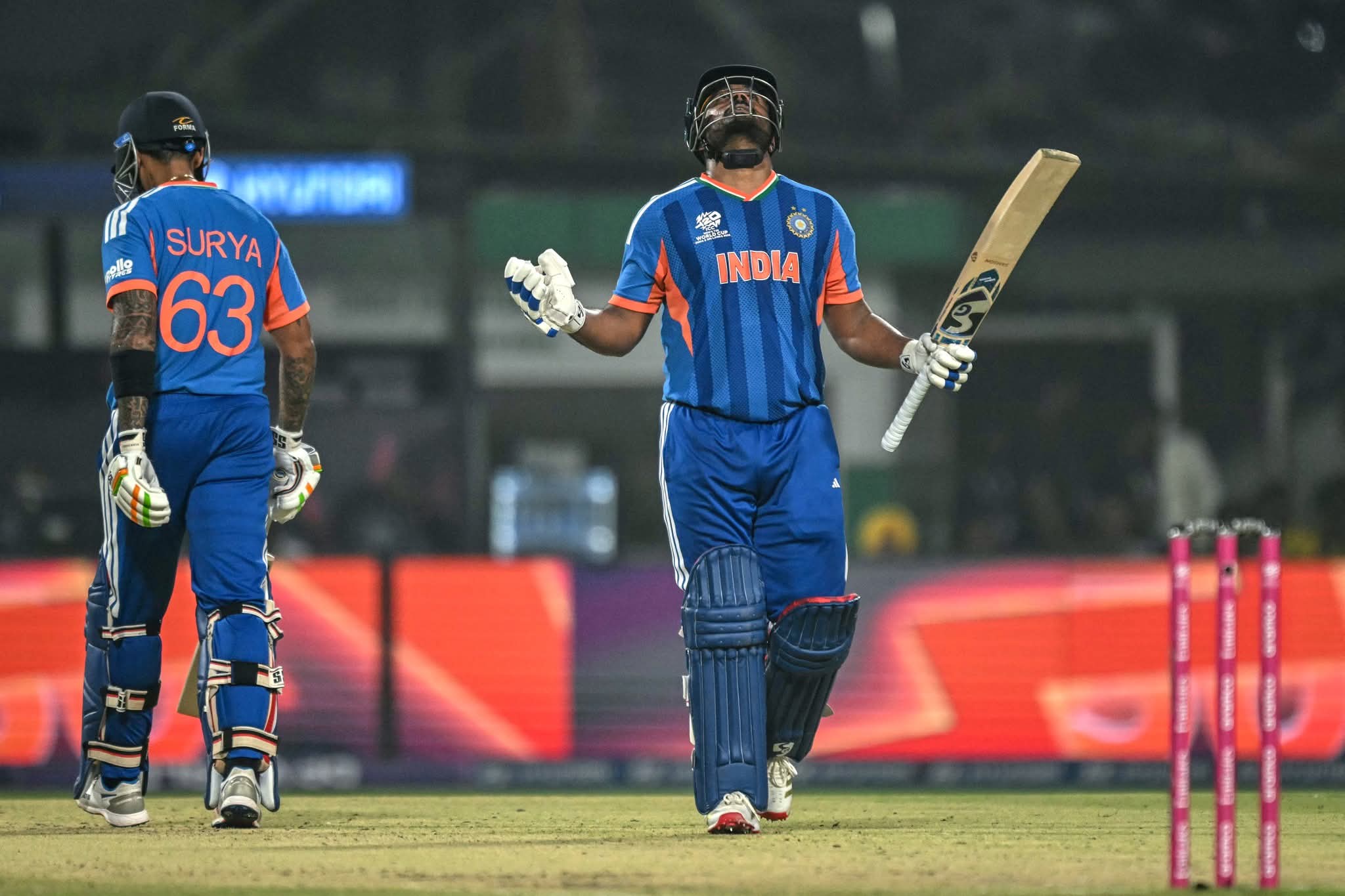 മറുപടി ബാറ്റിങിനിറങ്ങിയ ഇന്ത്യയുടെ സ്കോർ ബോർഡിൽ 29 റൺസായപ്പോൾ ആദ്യ വിക്കറ്റ് വീണു. 11 പന്തിൽ പത്ത് റൺസെടുത്ത അഭിഷേക് ശർമയുടെ വിക്കറ്റാണ് ഇന്ത്യക്ക് ആദ്യം നഷ്ടമായത്. കൂടുതൽ വൈകാതെ ഇഷാൻ കിഷന്റെ വിക്കറ്റും വീണു. ആറ് പന്തിൽ പത്ത് റൺസായിരുന്നു ഇഷാന്റെ സംഭാവന. പിന്നീട് ക്രീസിലെത്തിയ ക്യാപ്റ്റൻ സൂര്യകുമാർ യാദവ് 16 പന്തിൽ 18 റൺസെടുത്ത് പുറത്തായി.