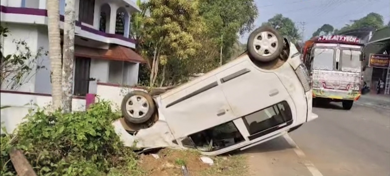 കാര് നിയന്ത്രണംവിട്ട് തലകീഴായി മറിഞ്ഞു ഒരാൾക്ക് പരിക്ക്