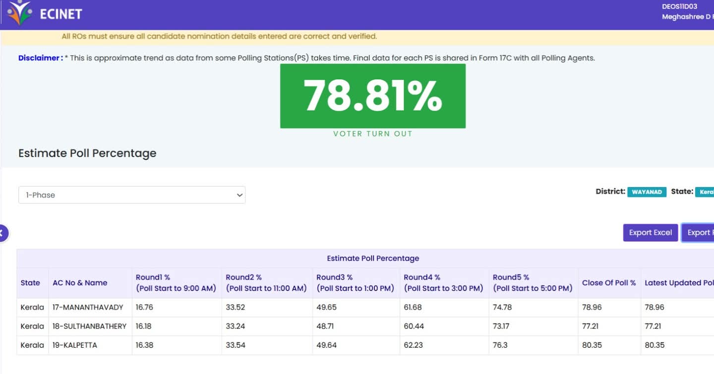 ജില്ലയിൽ 78.81 ശതമാനം പോളിങ് (8.00pm വരെ)