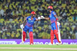 മറുപടി ബാറ്റിങ്ങിനിറങ്ങിയ ഡൽഹി ക്യാപിറ്റൽസിന് ഓപ്പണർമാരായ പാത്തും നിസ്സങ്കയും കെ.എൽ. രാഹുലും ചേർന്ന് മികച്ച തുടക്കമാണ് നൽകിയത്. ഇരുവരും തുടക്കം മുതൽ ആക്രമിച്ച് കളിച്ചതോടെ ഡൽഹി സ്കോർ നാലോവറിൽ തന്നെ അമ്പത് റൺസ് കടന്നിരുന്നു. 24 പന്തിൽ നിന്ന് 41 റൺസെടുത്ത നിസ്സങ്കയായിരുന്നു ഡൽഹി നിരയിൽ കൂടുതൽ അപകടകാരിയായി മാറിയത്. എന്നാൽ അഞ്ചാം ഓവറിൽ രാഹുലും തൊട്ടടുത്ത ഓവറിൽ നിസ്സങ്കയും പുറത്തായതോടെ ഡൽഹി പെട്ടെന്ന് പ്രതിരോധത്തിലായി. പിന്നാലെ വന്ന അക്ഷർ പട്ടേലും സമീർ റിസ്വിയും കുറഞ്ഞ റൺസിന് പുറത്തായത് ഡൽഹിക്ക് വലിയ തിരിച്ചടിയായി.