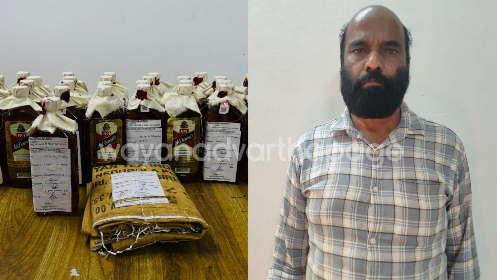 വെങ്ങപ്പള്ളി :കൽപ്പറ്റ എക്സൈസ് റെയിഞ്ച് ഇൻസ്പെക്ടർ ജി.ജിഷ്ണുവും സംഘവും വെങ്ങപ്പള്ളി മലഞ്ചെരിപ്പ്കുന്ന് ഭാഗത്ത് നടത്തിയ റെയിഡിൽ വിൽപ്പനക്കായി 30 കുപ്പികളിലായി സൂക്ഷിച്ചുവച്ച 15 ലിറ്റർ വിദേശമദ്യവുമായി ഒരാൾ അറസ്റ്റിൽ.വെങ്ങപ്പള്ളി മലഞ്ചെരിപ്പ്കുന്ന് സ്വദേശി ചൂണ്ടപുഴൂർ വീട്ടിൽ കുഞ്ഞനന്തൻ.സി.ജി ( 57 ) എന്നയാളെയാണ് അറസ്റ്റ് ചെയ്തത്.