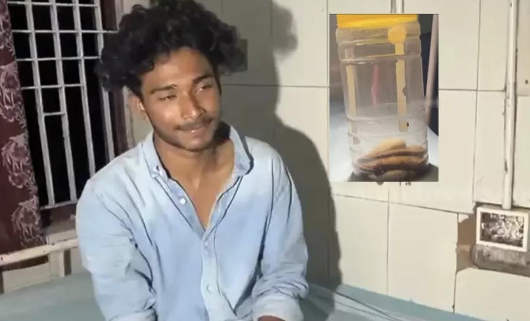 കടിച്ച പാമ്പിനെ കുപ്പിയിലാക്കി ആശുപത്രിയിലെത്തി യുവാവ്